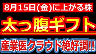 【爆益転換×優待新設】産業医クラウド絶好調で大手契約爆増!黒字転換と同時に大型優待発表、株主還元本気モード!8/15(金)に株価が上がる株・明日上がる株・来週上がる株・株式投資日本株最新情報
