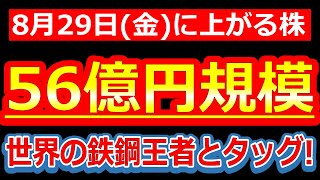 【株価に火をつける!世界の鉄鋼王者ポスコとタッグ!爆弾級ポジティブ!】8/29(金)に株価が上がる株・明日上がる株・来週上がる株・株式投資日本株最新情報