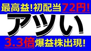 今アツい株!最高益で初配当72円!3.3倍爆益株も出現!