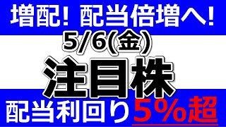増配! 配当倍増へ!配当利回り5%超!【5月6日(金)の注目銘柄まとめ】本日の株式相場振り返りと明日の注目銘柄・注目株・好材料・サプライズ決算を解説、株式投資の参考に。