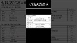 【株式投資】4月12日(火)の注目株一覧 #shorts