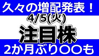 久々の増配発表!2か月ぶり〇〇も!【4月5日(火)の注目銘柄まとめ】本日の株式相場振り返りと明日の注目銘柄・注目株・好材料・サプライズ決算を解説、株式投資の参考に。