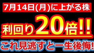 【利回り20倍はエグ過ぎ!!株主が狂喜乱舞するレベルの好材料でた!!】7/14(月)に株価が上がる株・明日上がる株・来週上がる株・株式投資日本株最新情報