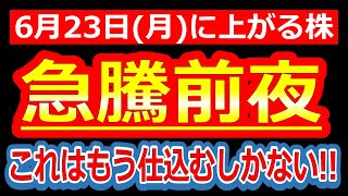 【“これはもう仕込むしかない”…週末発表の激アツ材料がエグい!】6/23(月)に株価が上がる株・来週上がる株・明日上がる株・株式投資日本株最新情報