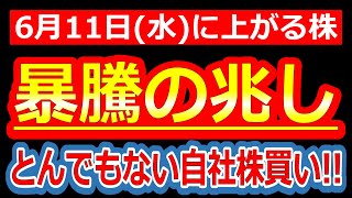 【トンデモナイ大量の自社株買い発表した株!!暴騰の兆し!?】6/11(水)に株価が上がる株・来週上がる株・明日上がる株・株式投資日本株最新情報