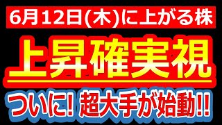【圧倒的カタリスト!!ついに!!超大手とタッグで始動!!上昇確実視される株!!】6/12(木)に株価が上がる株・来週上がる株・明日上がる株・株式投資日本株最新情報