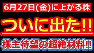 【ついに出た!!株主が待ち望んだ“ガチの爆弾材料”降臨!爆上げブーストくるぞ!!】6/27(金)に株価が上がる株・来週上がる株・明日上がる株・株式投資日本株最新情報