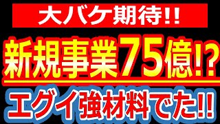 エグイ強材料でた!新規事業で75億!?大バケ期待株!