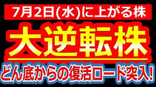 【“終わったと思われてた”銘柄がまさかの復活劇スタート!見直し買い殺到なるか!?】7/2(水)に株価が上がる株・来週上がる株・明日上がる株・株式投資日本株最新情報