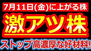 【買い殺到不可避!明日ストップ高濃厚級の主役たちがこちらです!】7/11(金)に株価が上がる株・明日上がる株・来週上がる株・株式投資日本株最新情報