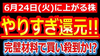【これはもう神対応…株主還元トリプルパンチで市場ざわつく!!完璧すぎて明日は買い殺到必至!!】6/24(火)に株価が上がる株・来週上がる株・明日上がる株・株式投資日本株最新情報