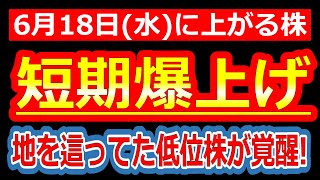 【お小遣いで買える激安株が覚醒!!桁違いの材料が火をつけた!低位株から一気にテンバガー候補へ!】6/18(水)に株価が上がる株・来週上がる株・明日上がる株・株式投資日本株最新情報