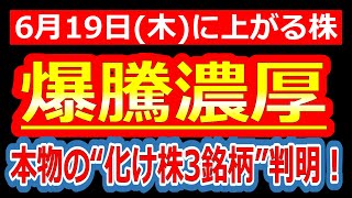【“買うしかない”レベルの神材料が出た3銘柄がこちら!好材料ぶっ込みで爆騰濃厚!】6/19(木)に株価が上がる株・来週上がる株・明日上がる株・株式投資日本株最新情報