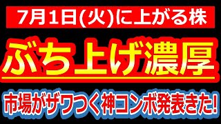 【完璧すぎて震える…株主歓喜の“3大好材料”を一気出し!】7/1(火)に株価が上がる株・来週上がる株・明日上がる株・株式投資日本株最新情報