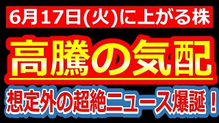 【想定外の超絶ニュース爆誕!!規格外の材料で暴騰モード突入!6/17(火)に株価が上がる株・来週上がる株・明日上がる株・株式投資日本株最新情報