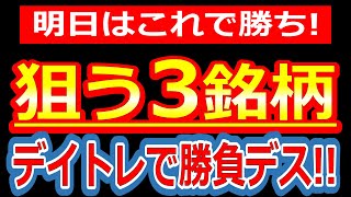 明日のデイトレは、この3銘柄で勝負します!
