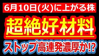 【超絶好材料きた!!これはストップ高連発濃厚か!?】6/10(火)に株価が上がる株・来週上がる株・明日上がる株・株式投資日本株最新情報