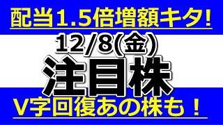 配当1.5倍増額キタ!V字回復あの株も!【12月8日(金)の注目株】