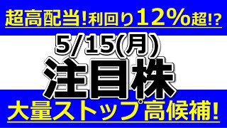 配当利回り12%超の超高配当誕生!?来週もストップ高候補が大量【5月15日(月)の注目株まとめ】