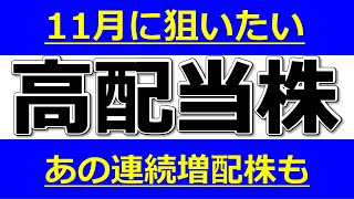 あの連続増配株も!?【11月の注目高配当株】