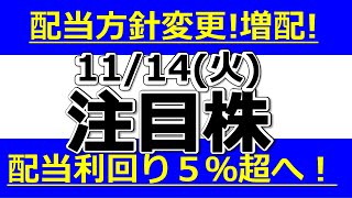 配当方針変更で利回り5%超!【11月14日(火)の注目株】明日のストップ高候補株・株式投資の参考に