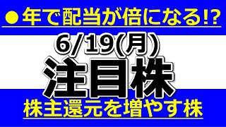 ●年で配当が倍になる!?株主還元を増やす株【6月19日(月)の注目株まとめ】