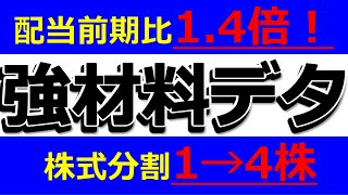 強材料出た!配当前期比1.4倍!株式分割1→4株