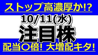 ストップ高濃厚!?配当●倍!大幅増配発表株【10月11日(水)の注目株】明日のストップ高候補株・株式投資の参考に