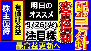 配当方針変更!配当増額!【9月26日(火)の注目株】明日のストップ高候補株・株式投資の参考に