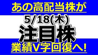 あの高配当株が業績V字回復へ!配当利回り6%超!【5月18日(木)の注目株まとめ】