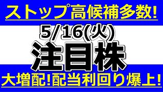 見逃せない明日のストップ高候補株が多数!大増配!配当利回り爆上げ!【5月16日(火)の注目株まとめ】