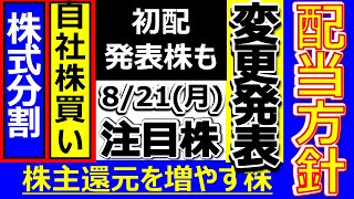 配当方針変更で株主還元を増やす株!初配発表株も【8月21日(月)の注目株】