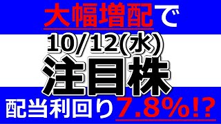 大幅増配で配当利回り7.8%!?【10月12日(水)の注目銘柄まとめ】本日の株式相場振り返りと明日の注目銘柄・注目株・好材料・サプライズ決算を解説、株式投資の参考に