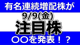 あの有名連続増配株が〇〇発表!?海外勢は日本株爆売り!【9月9日(金)の注目銘柄まとめ】本日の株式相場振り返りと明日の注目銘柄・注目株・好材料・サプライズ決算を解説、株式投資の参考に