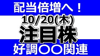 配当倍増へ!好調〇〇関連【10月20日(木)の注目銘柄まとめ】本日の株式相場振り返りと明日の注目銘柄・注目株・好材料・サプライズ決算を解説、株式投資の参考に