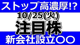 ストップ高濃厚!?新会社設立の〇〇!【10月25日(火)の注目銘柄まとめ】本日の株式相場振り返りと明日の注目銘柄・注目株・好材料・サプライズ決算を解説、株式投資の参考に