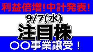利益倍増!中計発表!【9月7日(水)の注目銘柄まとめ】本日の株式相場振り返りと明日の注目銘柄・注目株・好材料・サプライズ決算を解説、株式投資の参考に