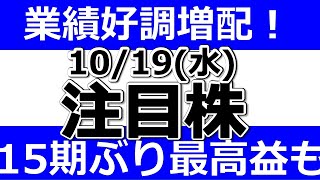 業績好調増配!15期ぶり最高益も【10月19日(水)の注目銘柄まとめ】本日の株式相場振り返りと明日の注目銘柄・注目株・好材料・サプライズ決算を解説、株式投資の参考に