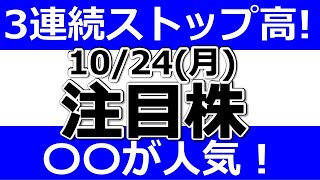 3連続ストップ高!〇〇が人気!【10月24日(月)の注目銘柄まとめ】本日の株式相場振り返りと明日の注目銘柄・注目株・好材料・サプライズ決算を解説、株式投資の参考に