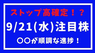 ストップ高確定!?〇〇が順調な進捗!【9月21日(水)の注目銘柄まとめ】本日の株式相場振り返りと明日の注目銘柄・注目株・好材料・サプライズ決算を解説、株式投資の参考に
