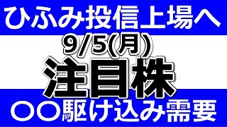 ひふみ投信上場へ!〇〇駆け込み需要!【9月5日(月)の注目銘柄まとめ】本日の株式相場振り返りと明日の注目銘柄・注目株・好材料・サプライズ決算を解説、株式投資の参考に