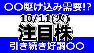 〇〇駆け込み需要!?引き続き好調な〇〇関連【10月11日(火)の注目銘柄まとめ】本日の株式相場振り返りと明日の注目銘柄・注目株・好材料・サプライズ決算を解説、株式投資の参考に
