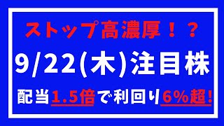 ストップ高濃厚!?配当1.5倍で配当利回り6%超!【9月22日(木)の注目銘柄まとめ】本日の株式相場振り返りと明日の注目銘柄・注目株・好材料・サプライズ決算を解説、株式投資の参考に