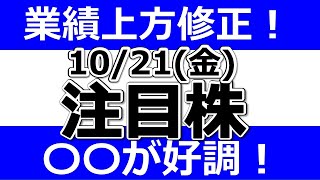 業績上方修正!〇〇が好調!【10月21日(金)の注目銘柄まとめ】本日の株式相場振り返りと明日の注目銘柄・注目株・好材料・サプライズ決算を解説、株式投資の参考に