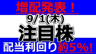 増配発表!配当利回り約5%!【9月1日(木)の注目銘柄まとめ】本日の株式相場振り返りと明日の注目銘柄・注目株・好材料・サプライズ決算を解説、株式投資の参考に