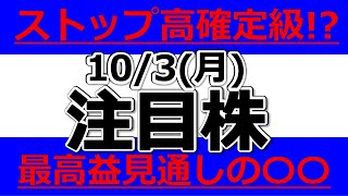ストップ高確定級!?最高益見通しの〇〇!【10月3日(月)の注目銘柄まとめ】本日の株式相場振り返りと明日の注目銘柄・注目株・好材料・サプライズ決算を解説、株式投資の参考に
