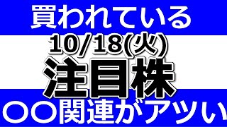 買われている〇〇関連がアツい【10月18日(火)の注目銘柄まとめ】本日の株式相場振り返りと明日の注目銘柄・注目株・好材料・サプライズ決算を解説、株式投資の参考に