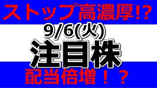 ストップ高濃厚!?配当倍増!?【9月6日(火)の注目銘柄まとめ】本日の株式相場振り返りと明日の注目銘柄・注目株・好材料・サプライズ決算を解説、株式投資の参考に