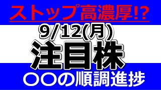 ストップ高濃厚!?〇〇の順調進捗発表!【9月12日(月)の注目銘柄まとめ】本日の株式相場振り返りと明日の注目銘柄・注目株・好材料・サプライズ決算を解説、株式投資の参考に