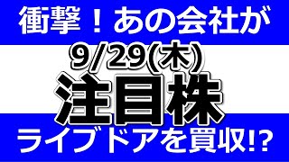 衝撃!あの会社がライブドアを買収!?【9月29日(木)の注目銘柄まとめ】本日の株式相場振り返りと明日の注目銘柄・注目株・好材料・サプライズ決算を解説、株式投資の参考に
